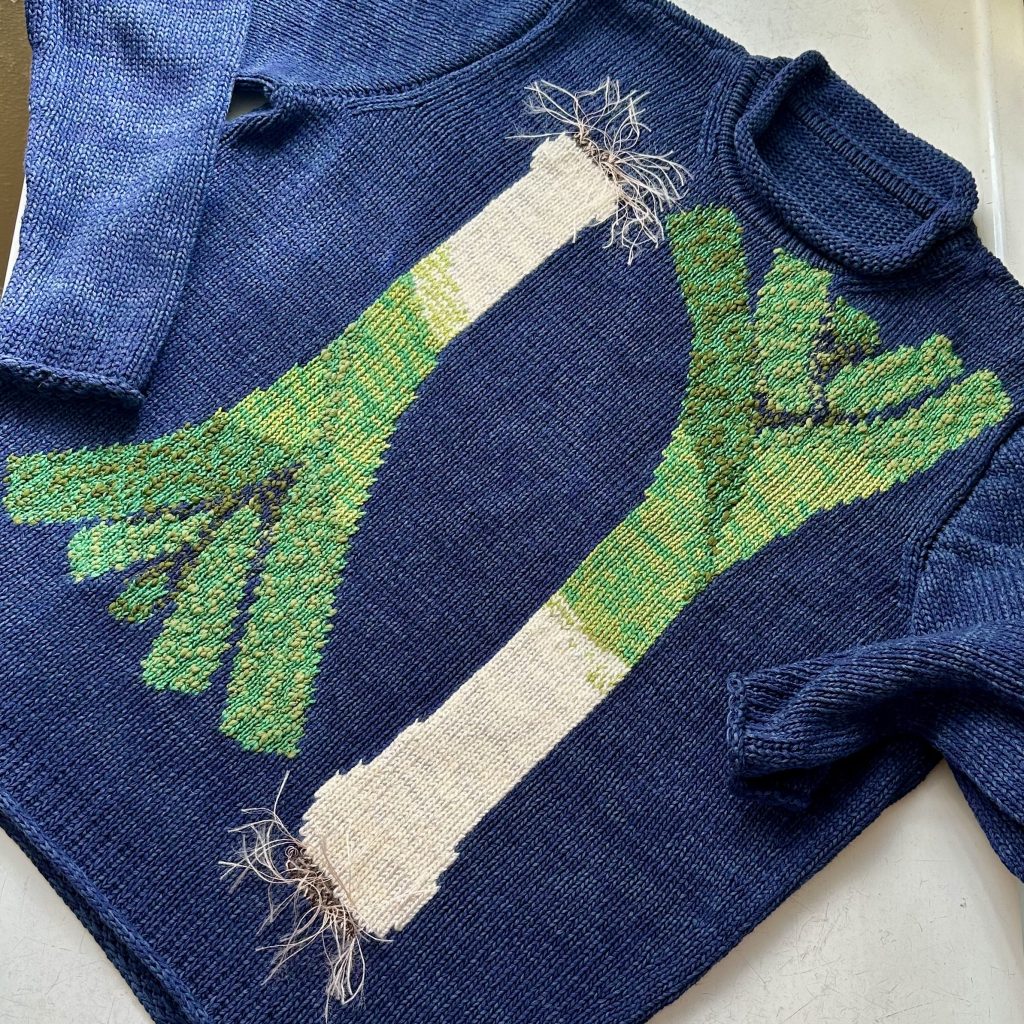 sweater with leeks on it